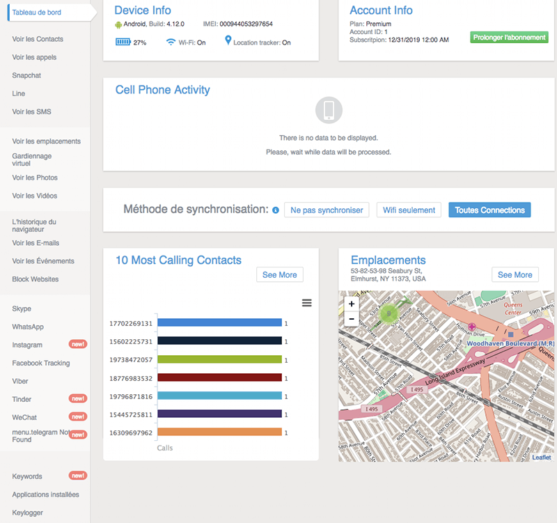 | Messages instantanésINFO : C'est sûrement l'option qui vous intéresse le plus : espionner snapchat. Mais vous serez sûrement intéréssé par espionner les messages instantanés d'autres applications type facebook, whatsapp, viber, BBM, imessage, skype, ... | Snapchat, Facebook, skype, viber, Whatsapp, imessages, hangouts, instagram, tinder, line, telegram |