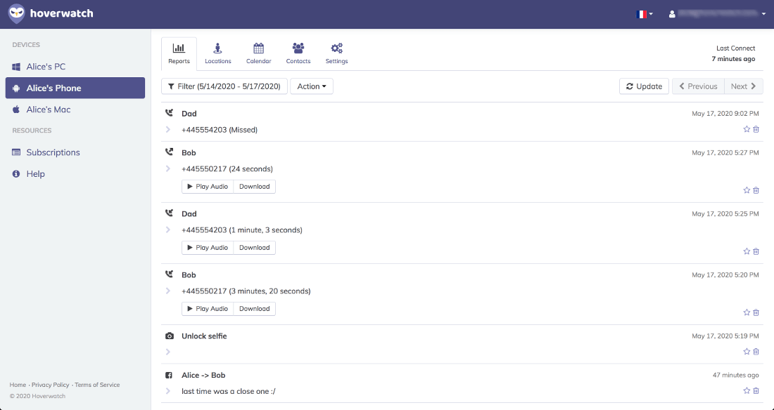 Avec le logiciel espion Hoverwatch, vous aurez accès à l'intégralité des contacts du téléphone portable.