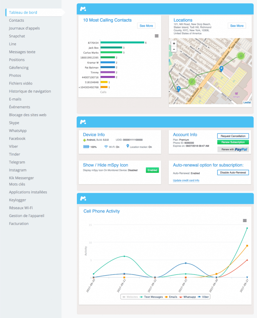 Suivant le logiciel espion que vous aurez choisi, vous aurez accès à différents types d'informations.